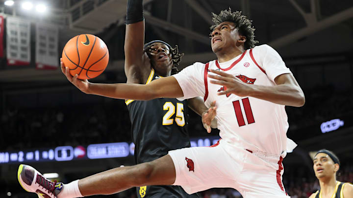 Arkansas opens as huge 10.5 point favorites over the Tigers, and Missouri will have their hands full trying to contain potential SEC Player of the Year in freshman Darius Acuff Jr. He's averaging 22.3 points per game in 50 percent shooting, and just rattled off 49 points in the double-overtime loss to Alabama on Wednesday.
